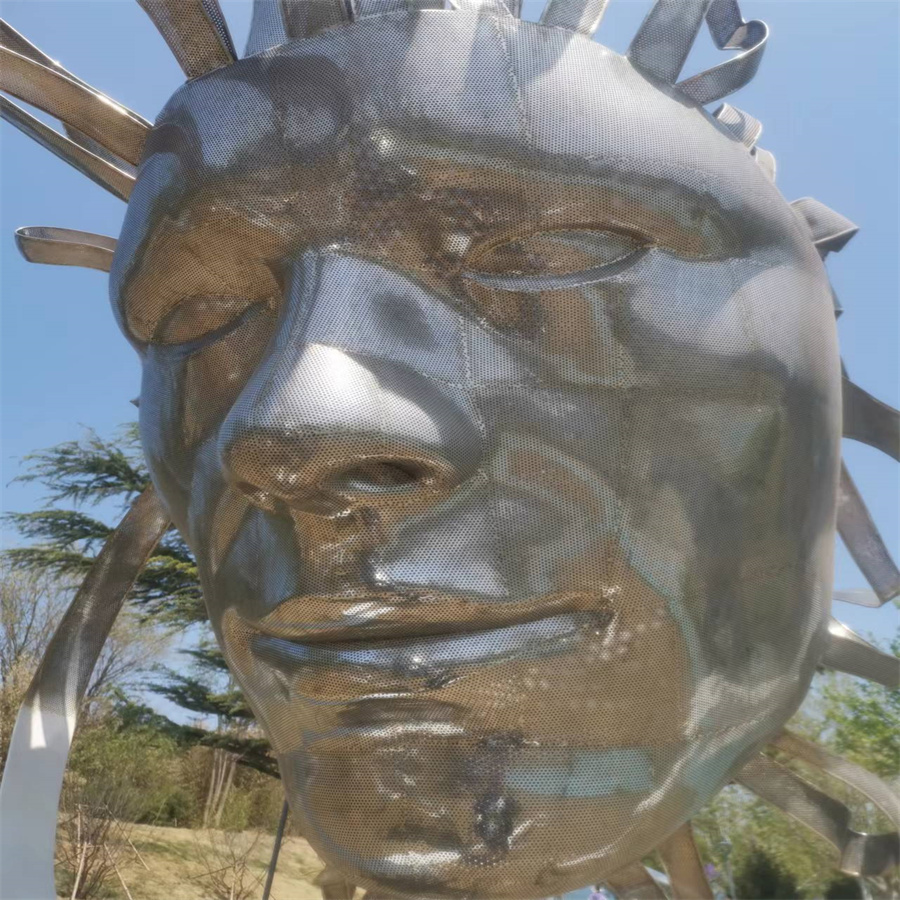 威海市公園其中一個雕像是用沖孔板做的工藝是把不銹鋼沖孔板做好在用模具壓好焊接打磨成型對手工活要求非常高設計圖由對方提供的我廠負責生產成型的有感興趣的朋友聯系我們為你生產